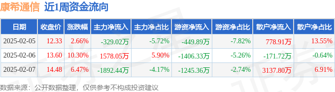 资金流向数据方面,本周康希通信主力资金合计净流出643.41万元,游资资金合计净流出3101.58万元,散户资金合计净流入3744.99万元。本周资金流向一览见下表: