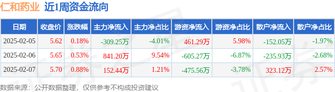 资金流向数据方面,本周仁和药业主力资金合计净流入684.39万元,游资资金合计净流出619.54万元,散户资金合计净流出64.85万元。本周资金流向一览见下表: