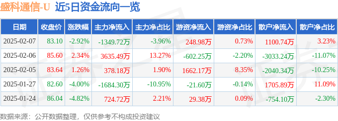 证券之星消息,截至2025年2月7日收盘,盛科通信(688702)报收于83.1元,下跌2.92%,换手率2.02%,成交量4.07万手,成交额3.41亿元。