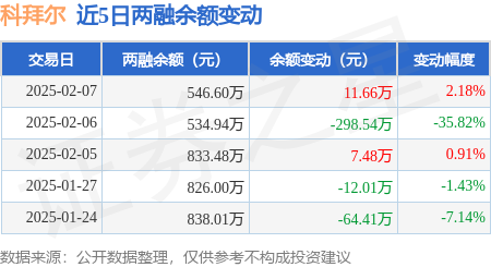 证券之星消息,2月7日,科拜尔(920066)融资买入105.17万元,融资偿还93.51万元,融资净买入11.66万元,融资余额546.6万元。