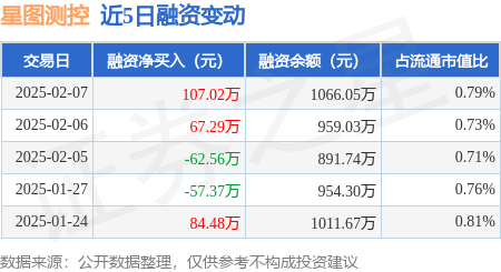 证券之星消息,2月7日,星图测控(920116)融资买入650.99万元,融资偿还543.97万元,融资净买入107.02万元,融资余额1066.05万元。