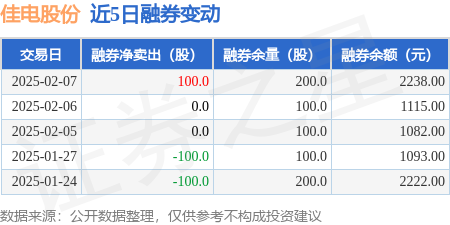 证券之星消息,2月7日,佳电股份(000922)融资买入1228.45万元,融资偿还1111.84万元,融资净买入116.62万元,融资余额3.52亿元,近20个交易日中有11个交易日出现融资净买入。