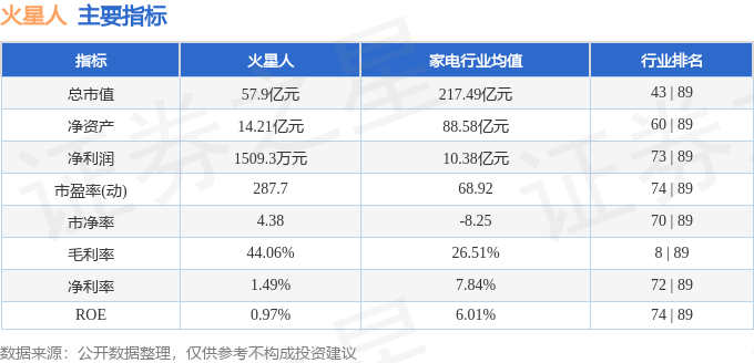 火星人2024年三季报显示,公司主营收入10.13亿元,同比下降35.51%;归母净利润1509.3万元,同比下降93.22%;扣非净利润885.02万元,同比下降95.65%;其中2024年第三季度,公司单季度主营收入3.16亿元,同比下降42.29%;单季度归母净利润-2594.87万元,同比下降129.96%;单季度扣非净利润-2703.43万元,同比下降134.54%;负债率41.26%,投资收益-107.78万元,财务费用-1296.08万元,毛利率44.06%。火星人(300894)主营业务:专业从事新型厨房电器产品的研发、设计、生产与销售业务。