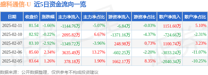 2月11日的资金流向数据方面,主力资金净流出1144.76万元,占总成交额5.07%,游资资金净流出6.84万元,占总成交额0.03%,散户资金净流入1151.6万元,占总成交额5.1%。