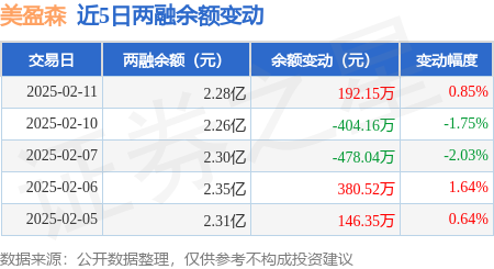 证券之星消息,2月11日,美盈森(002303)融资买入894.61万元,融资偿还703.0万元,融资净买入191.61万元,融资余额2.28亿元。