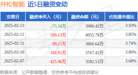证券之星消息,2月13日,井松智能(688251)融资买入195.5万元,融资偿还270.85万元,融资净卖出75.34万元,融资余额3980.43万元。