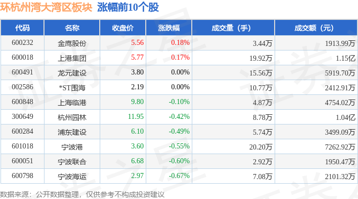 从资金流向上来看,当日环杭州湾大湾区板块主力资金净流出3.63亿元,游资资金净流入9547.33万元,散户资金净流入2.68亿元。环杭州湾大湾区板块个股资金流向见下表: