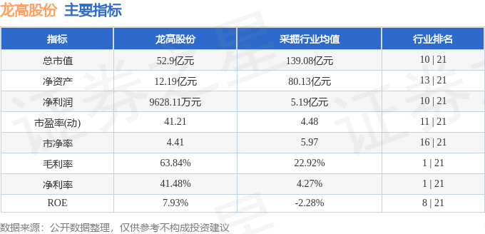龙高股份(605086)主营业务:高岭土的采选、加工和销售,以及相关技术研发业务。 龙高股份2024年三季报显示,公司主营收入2.32亿元,同比下降0.24%;归母净利润9628.11万元,同比上升4.57%;扣非净利润8840.61万元,同比上升1.89%;其中2024年第三季度,公司单季度主营收入9937.48万元,同比上升14.42%;单季度归母净利润5093.73万元,同比上升40.04%;单季度扣非净利润4747.6万元,同比上升37.01%;负债率6.53%,投资收益928.19万元,财务费用-261.01万元,毛利率63.84%。