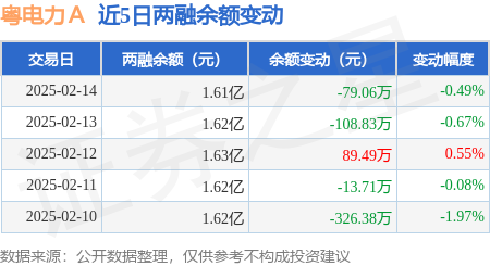 证券之星消息,2月14日,粤电力A(000539)融资买入299.1万元,融资偿还378.03万元,融资净卖出78.93万元,融资余额1.6亿元。