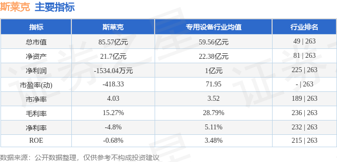 该股主要指标及行业内排名如下: