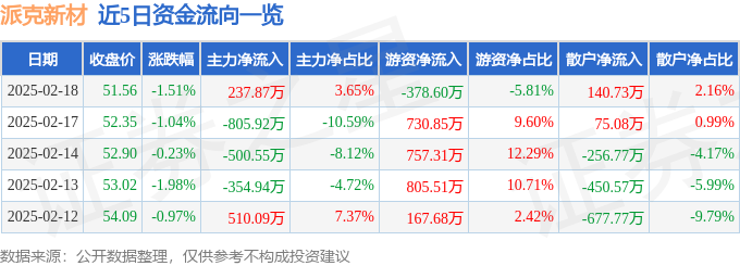 2月18日的资金流向数据方面,主力资金净流入237.87万元,占总成交额3.65%,游资资金净流出378.6万元,占总成交额5.81%,散户资金净流入140.73万元,占总成交额2.16%。