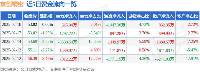 2月18日的资金流向数据方面,主力资金净流入615.04万元,占总成交额2.01%,游资资金净流出1447.38万元,占总成交额4.73%,散户资金净流入832.35万元,占总成交额2.72%。