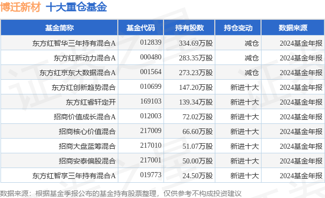 重仓博迁新材的前十大公募基金请见下表: