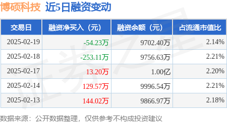 证券之星消息,2月19日,博硕科技(300951)融资买入603.69万元,融资偿还657.91万元,融资净卖出54.23万元,融资余额9702.4万元。