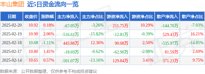 2月20日的资金流向数据方面,主力资金净流出67.05万元,占总成交额3.26%,游资资金净流入211.75万元,占总成交额10.29%,散户资金净流出144.7万元,占总成交额7.03%。