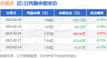 证券之星消息,2月20日,多氟多(002407)融资买入1652.14万元,融资偿还1872.61万元,融资净卖出220.47万元,融资余额7.9亿元。