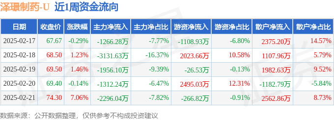 资金流向数据方面,本周泽璟制药-U主力资金合计净流出9962.28万元,游资资金合计净流入3116.42万元,散户资金合计净流入6845.86万元。本周资金流向一览见下表: