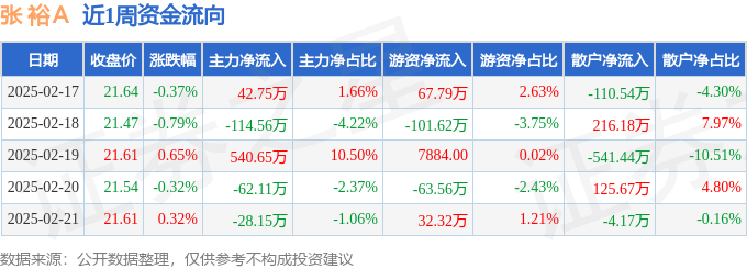 资金流向数据方面,本周张 裕A主力资金合计净流入378.58万元,游资资金合计净流出64.28万元,散户资金合计净流出314.3万元。本周资金流向一览见下表: