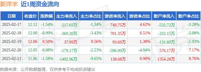 沪深股通持股方面,截止2025年2月21日收盘,新洋丰深股通持股数为1453.89万股,占流通股比为127.0%。