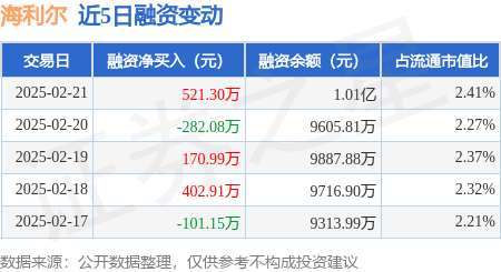 证券之星消息,2月21日,海利尔(603639)融资买入743.2万元,融资偿还221.9万元,融资净买入521.3万元,融资余额1.01亿元,近20个交易日中有11个交易日出现融资净买入。
