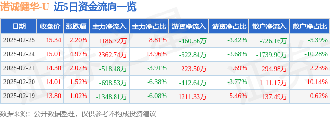 证券之星消息,截至2025年2月25日收盘,诺诚健华(688428)报收于15.34元,上涨2.2%,换手率3.33%,成交量8.87万手,成交额1.35亿元。