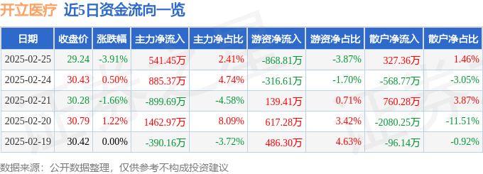 证券之星消息,截至2025年2月25日收盘,开立医疗(300633)报收于29.24元,下跌3.91%,换手率1.75%,成交量7.58万手,成交额2.24亿元。