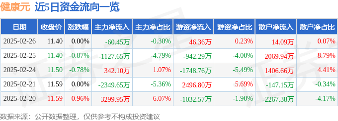 2月26日的资金流向数据方面,主力资金净流出60.45万元,占总成交额0.3%,游资资金净流入46.36万元,占总成交额0.23%,散户资金净流入14.09万元,占总成交额0.07%。