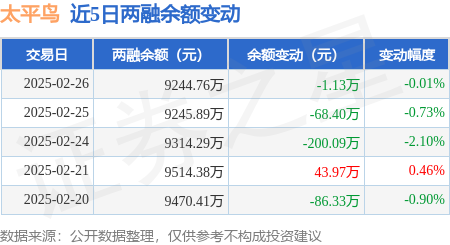 证券之星消息,2月26日,太平鸟(603877)融资买入213.5万元,融资偿还215.32万元,融资净卖出1.81万元,融资余额9208.21万元。