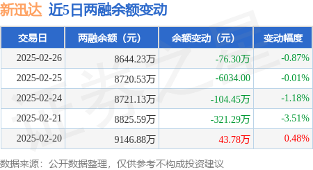 证券之星消息,2月26日,新迅达(300518)融资买入200.72万元,融资偿还277.02万元,融资净卖出76.3万元,融资余额8644.23万元。