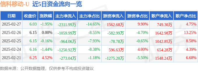 证券之星消息,截至2025年2月27日收盘,信科移动(688387)报收于6.03元,下跌1.95%,换手率1.9%,成交量26.14万手,成交额1.58亿元。