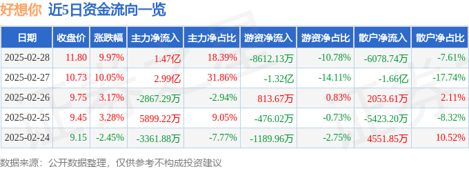 2月28日的资金流向数据方面,主力资金净流入1.47亿元,占总成交额18.39%,游资资金净流出8612.13万元,占总成交额10.78%,散户资金净流出6078.74万元,占总成交额7.61%。