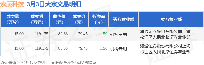 证券之星消息,3月3日索辰科技发生大宗交易,交易数据如下: