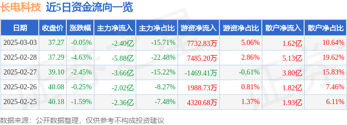 3月3日的资金流向数据方面,主力资金净流出2.4亿元,占总成交额15.71%,游资资金净流入7732.83万元,占总成交额5.06%,散户资金净流入1.62亿元,占总成交额10.64%。