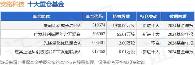 根据2024基金年报公募基金重仓股数据,重仓该股的公募基金共4家,其中持有数量最多的公募基金为银河创新成长混合A。银河创新成长混合A目前规模为142.08亿元,最新净值6.7105(3月3日),较上一交易日下跌1.06%,近一年上涨58.99%。该公募基金现任基金经理为郑巍山。郑巍山在任的基金产品包括:银河和美生活混合A,管理时间为2020年2月17日至今,期间收益率为11.51%;银河产业动力混合A,管理时间为2022年3月17日至今,期间收益率为4.76%;银河智联混合A,管理时间为2022年3月17日至今,期间收益率为23.59%。