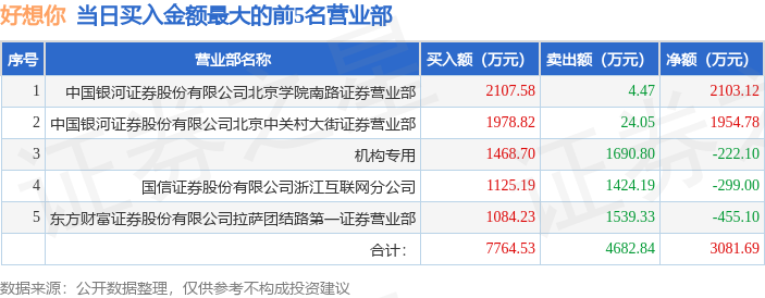 从龙虎榜公布的当日买卖数据来看,机构合计净卖出222.1万元。北京中关村等知名游资榜上有名。(知名游资北京中关村一般指中国银河证券股份有限公司北京中关村大街证券营业部席位,根据市场资料整理,仅供参考)