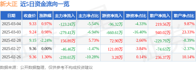 3月4日的资金流向数据方面,主力资金净流出123.24万元,占总成交额5.54%,游资资金净流出96.32万元,占总成交额4.33%,散户资金净流入219.56万元,占总成交额9.87%。