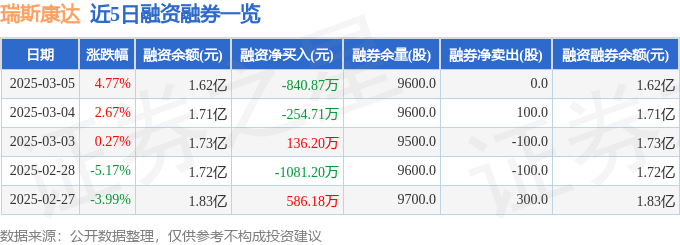 证券之星消息,截至2025年3月5日收盘,瑞斯康达(603803)报收于12.07元,上涨4.77%,换手率8.99%,成交量38.2万手,成交额4.55亿元。