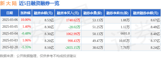 新 大 陆融资融券信息显示,融资方面,当日融资买入1.99亿元,融资偿还1.82亿元,融资净买入1740.62万元。融券方面,融券卖出2.33万股,融券偿还4501.0股,融券余量53.13万股,融券余额1350.56万元。融资融券余额8.67亿元。