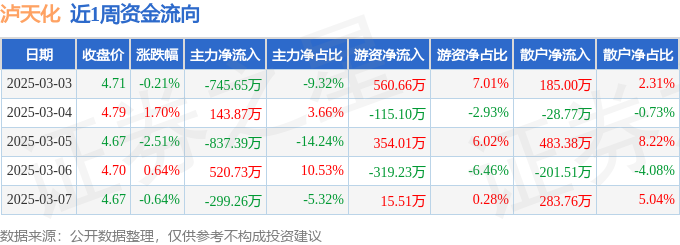 沪深股通持股方面,截止2025年3月7日收盘,泸天化深股通持股数为485.37万股,占流通股比为31.0%。