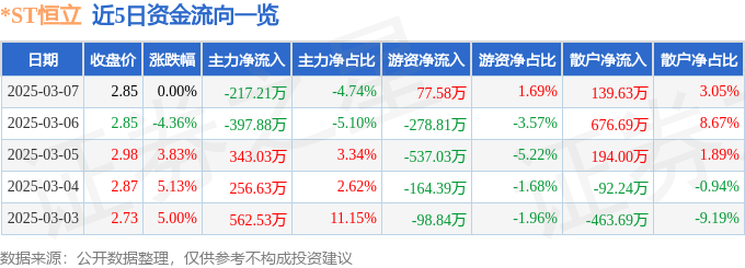 3月7日的资金流向数据方面,主力资金净流出217.21万元,占总成交额4.74%,游资资金净流入77.58万元,占总成交额1.69%,散户资金净流入139.63万元,占总成交额3.05%。