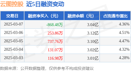 证券之星消息,3月7日,云图控股(002539)融资买入1067.22万元,融资偿还1935.7万元,融资净卖出868.48万元,融资余额3.04亿元,近20个交易日中有13个交易日出现融资净买入。