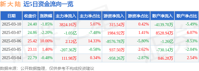 3月10日的资金流向数据方面,主力资金净流入3824.16万元,占总成交额5.07%,游资资金净流入315.54万元,占总成交额0.42%,散户资金净流出4139.7万元,占总成交额5.49%。