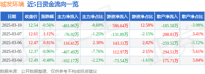3月10日的资金流向数据方面,主力资金净流出401.06万元,占总成交额8.6%,游资资金净流入586.64万元,占总成交额12.58%,散户资金净流出185.58万元,占总成交额3.98%。