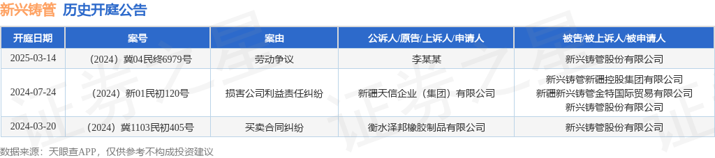 证券之星消息,根据天眼查APP显示,近日公布了一则新兴铸管股份有限公司作为被告/被上诉人的开庭公告,详细内容如下: