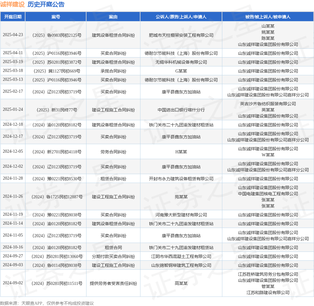 证券之星消息,根据天眼查APP显示,近日公布了一则山东诚祥建设集团股份有限公司作为被告/被上诉人的开庭公告,详细内容如下: