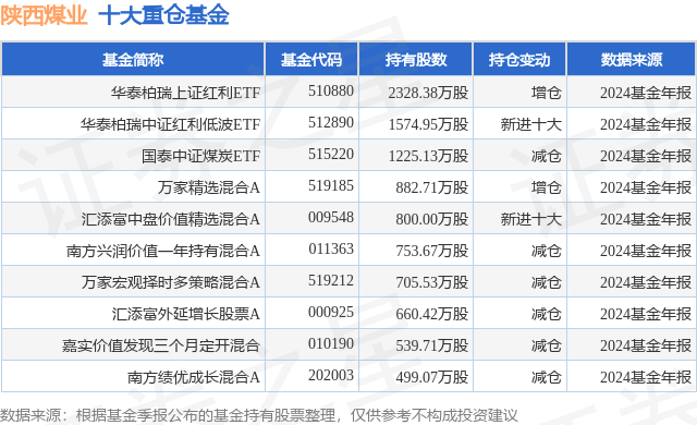 根据2024基金年报公募基金重仓股数据,重仓该股的公募基金共183家,其中持有数量最多的公募基金为华泰柏瑞基金的华泰柏瑞上证红利ETF。华泰柏瑞上证红利ETF目前规模为233.99亿元,最新净值3.0181(3月12日),较上一交易日下跌0.27%,近一年上涨2.52%。该公募基金现任基金经理为柳军 李茜。柳军在任的基金产品包括:华泰柏瑞沪深300ETF,管理时间为2012年5月4日至今,期间收益率为79.44%;华泰柏瑞沪深300ETF联接A,管理时间为2012年5月29日至今,期间收益率为95.97%;华泰MSCI中国A股国际通ETF,管理时间为2018年4月26日至今,期间收益率为52.84%。李茜在任的基金产品包括:华泰柏瑞中证光伏产业ETF,管理时间为2020年12月7日至今,期间收益率为-24.8%;华泰柏瑞中证港股通50ETF,管理时间为2020年12月30日至今,期间收益率为7.21%;华泰柏瑞中证沪港深互联网ETF,管理时间为2021年1月25日至今,期间收益率为-10.67%。
