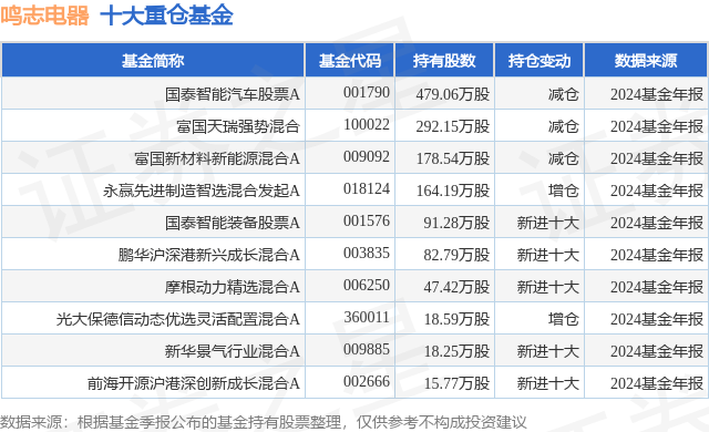 重仓鸣志电器的前十大公募基金请见下表: