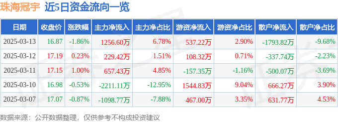 3月13日的资金流向数据方面,主力资金净流入1256.6万元,占总成交额6.78%,游资资金净流入537.22万元,占总成交额2.9%,散户资金净流出1793.82万元,占总成交额9.68%。