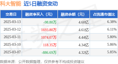 证券之星消息,3月13日,科大智能(300222)融资买入3535.47万元,融资偿还3634.27万元,融资净卖出98.8万元,融资余额4.6亿元。