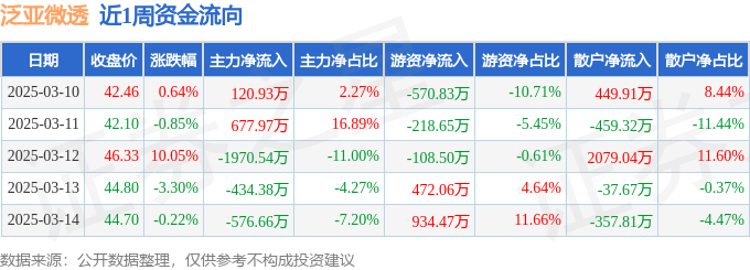 资金流向数据方面,本周泛亚微透主力资金合计净流出2182.68万元,游资资金合计净流入508.54万元,散户资金合计净流入1674.15万元。本周资金流向一览见下表: